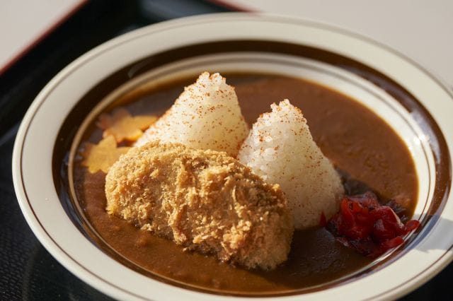 常陸牛を使用したコロッケと、筑波山のシルエット型に盛り付けられたフォルムが人気の「つくば山カレー」。秋の紅葉シーズンにあわせて期間限定のアレンジメニューが初登場します。「つくば山カレー紅葉仕立て」と題して、明太子