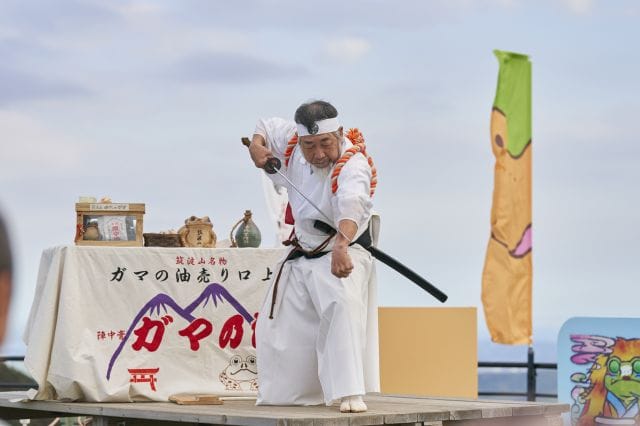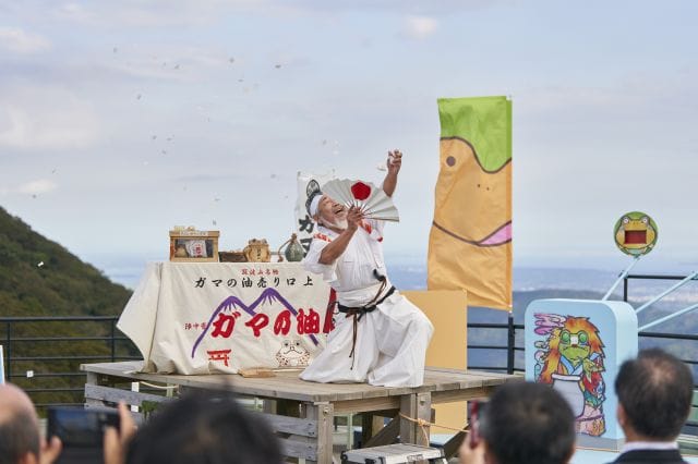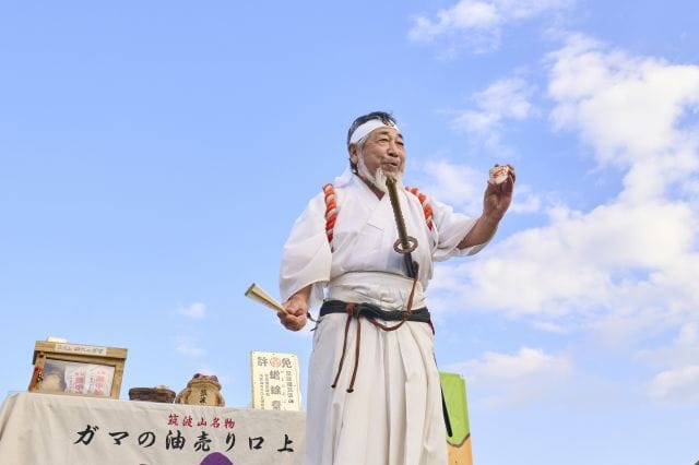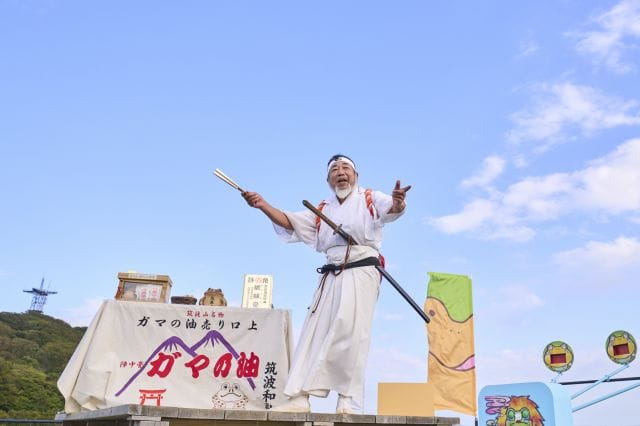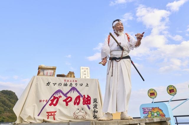 筑波山名物の「ガマの油売り口上」。「ガマの油」を売り出すための軽快で