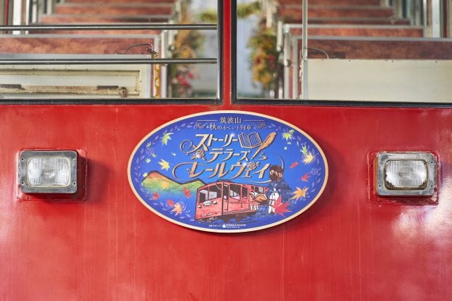 頂上へむかう車内ではアートフラワーを使用した「紅葉のアートトレイン」が運航します。通常は白い車内が一変。 鮮やかな紅葉や秋の果物に彩られた極彩色のアートトレインを楽しむことができます。また、期間限定の秋装飾 にあわせ、期間限定のヘッドマークがお目見えします。電車の顔である車体の中央に配されるヘッドプレートは、 紅葉した筑波山とこのシーズンに開催される朗読列車の様子を描いたオリジナルデザインです。